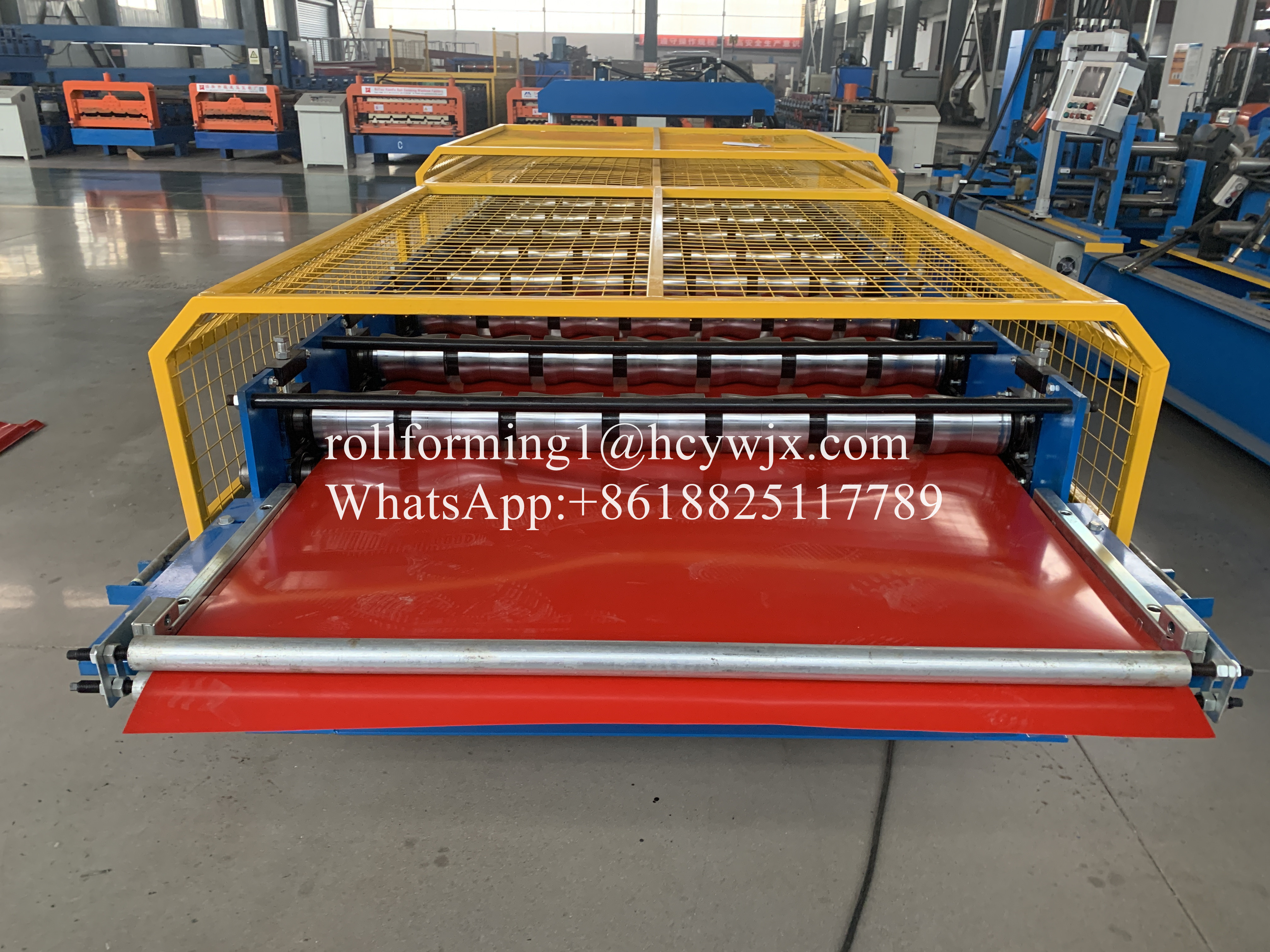 เครื่องขึ้นรูปม้วนของเราสามารถผลิตหลังคาเหล็กและแผงผนังต่าง ๆ มันเป็นวัสดุก่อสร้างใหม่ผลิตภัณฑ์ที่ใช้กันอย่างแพร่หลายเป็นหลังคาและผนังของโรงงานคลังสินค้าโรงจอดรถโรงยิมศูนย์นิทรรศการโรงภาพยนตร์โรงละคร ฯลฯ มัน มีข้อดีหลายประการเช่นติดตั้งง่ายระยะเวลาการสร้างสั้นความงามน้ำหนักเบา แต่มีความแข็งแรงสูง