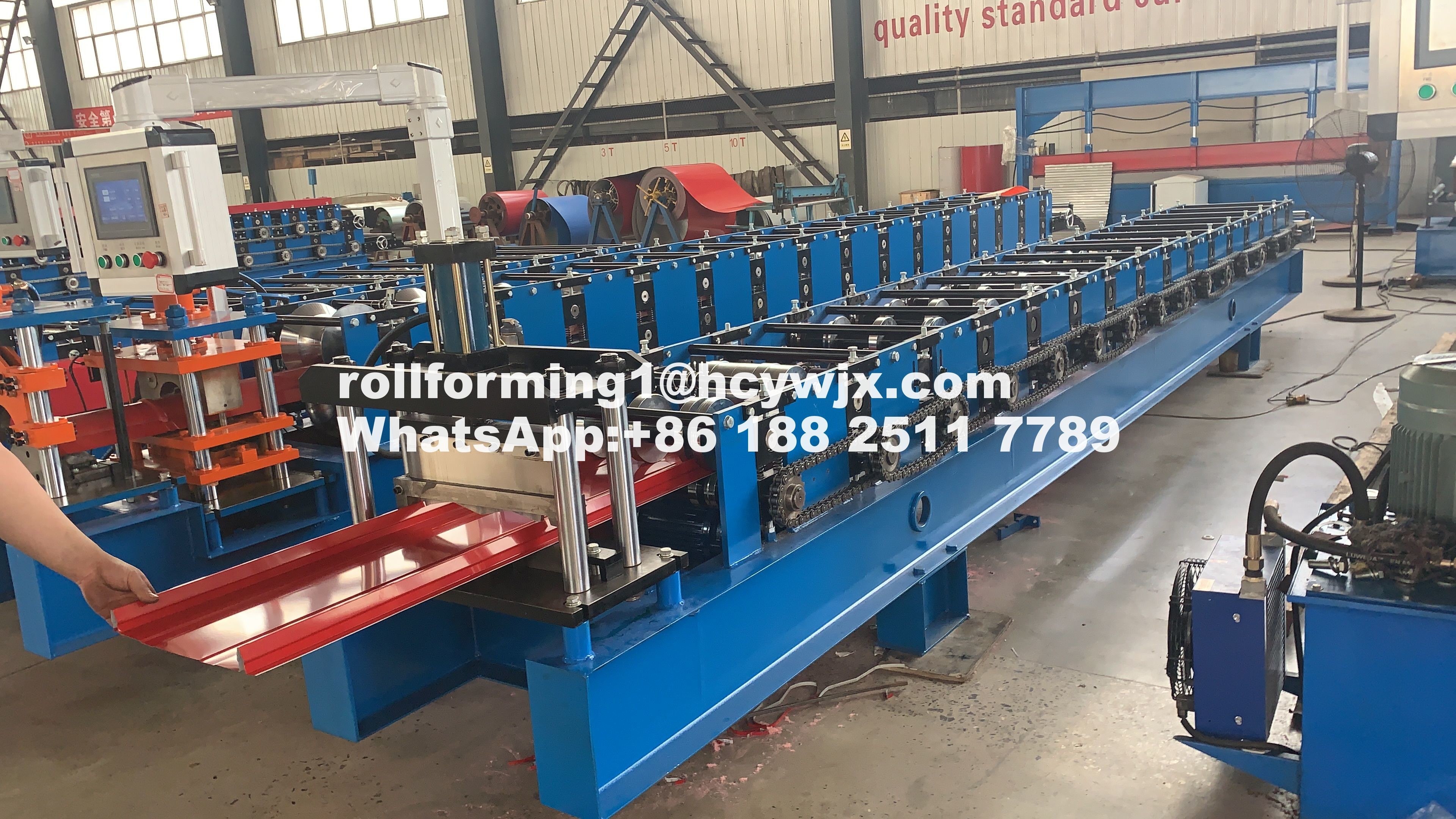 เครื่องจักรการสร้างม้วนของเราสามารถผลิตหลากหลายของดาดฟ้าเหล็กและแผ่นผนัง, มันเป็นวัสดุก่อสร้างใหม่, ผลิตภัณฑ์ที่ใช้อย่างแพร่หลายเป็นดาดฟ้าและผนังของโรงงาน, โกดัง, คาราจ, โรงออกกําลังกาย,ศูนย์แสดงสินค้า, ห้องหนัง, โรงละคร ฯลฯ มีข้อดีมากมาย เช่น การติดตั้งง่าย ระยะเวลาในการสร้างสั้น สวยงาม น้ําหนักเบา แต่มีความแข็งแรงสูง