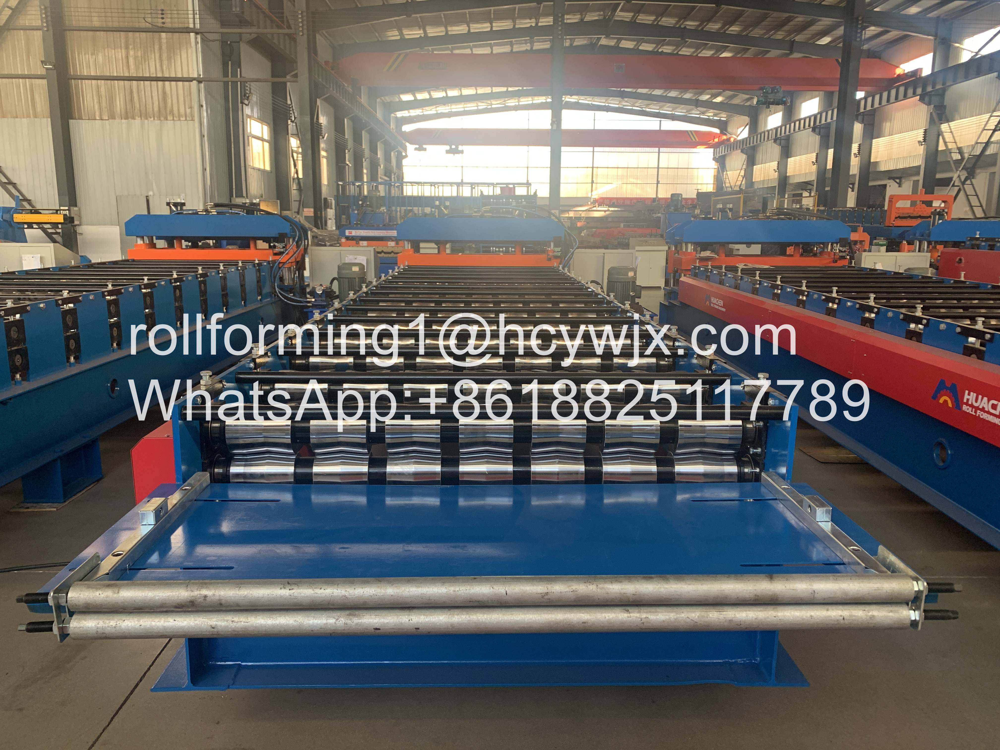 เครื่องม้วนของเราสามารถผลิตหลังคาเหล็กและแผงผนังได้หลากหลาย เป็นวัสดุก่อสร้างใหม่ ผลิตภัณฑ์ที่ใช้กันอย่างแพร่หลายเป็นหลังคาและผนังของโรงงาน โกดัง โรงรถ โรงยิม ศูนย์แสดงสินค้า โรงภาพยนตร์ โรงละคร ฯลฯ มีข้อดีหลายประการ เช่น ติดตั้งง่าย อายุอาคารสั้น สวยงาม น้ำหนักเบา แต่มีความแข็งแรงสูง